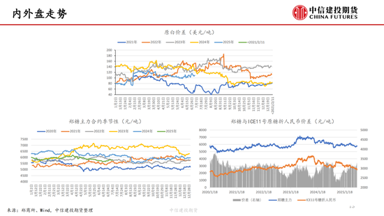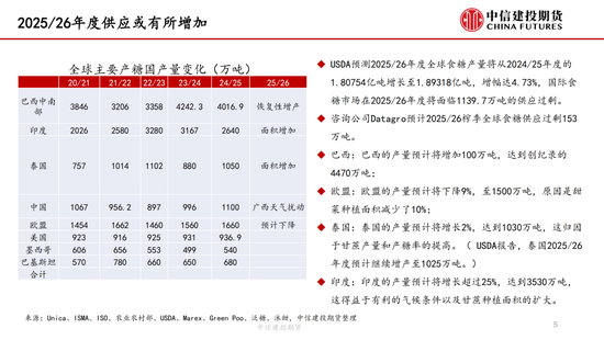本周原糖ICE07合约临近交割,多头接货意愿不足导致价格大幅走低,进而带动远月合约探底。周四ICE原糖主力合约大幅超跌反弹,脱离因交割接货意愿不足而触及的新低区域。USDA预计2025/26榨季全球食糖产量增长860万吨至1.893亿吨。Datagro表示尽管2025/26榨季初期收获缓慢,但甘蔗生长条件有利,预计2025/26榨季全球食糖供应过剩153万吨。Czarnikow预计2025/26年度全球食糖过剩750万吨,为2017/18年度以来最大。虽各国际主流机构预测有分歧,但总体认为新榨季供需偏宽松的可能性更大中兴证券,而ICE原糖价格的走低也似乎在印证着这一点。作为全球进口食糖的最大供应国,巴西新榨季的产糖进度将成为关键。