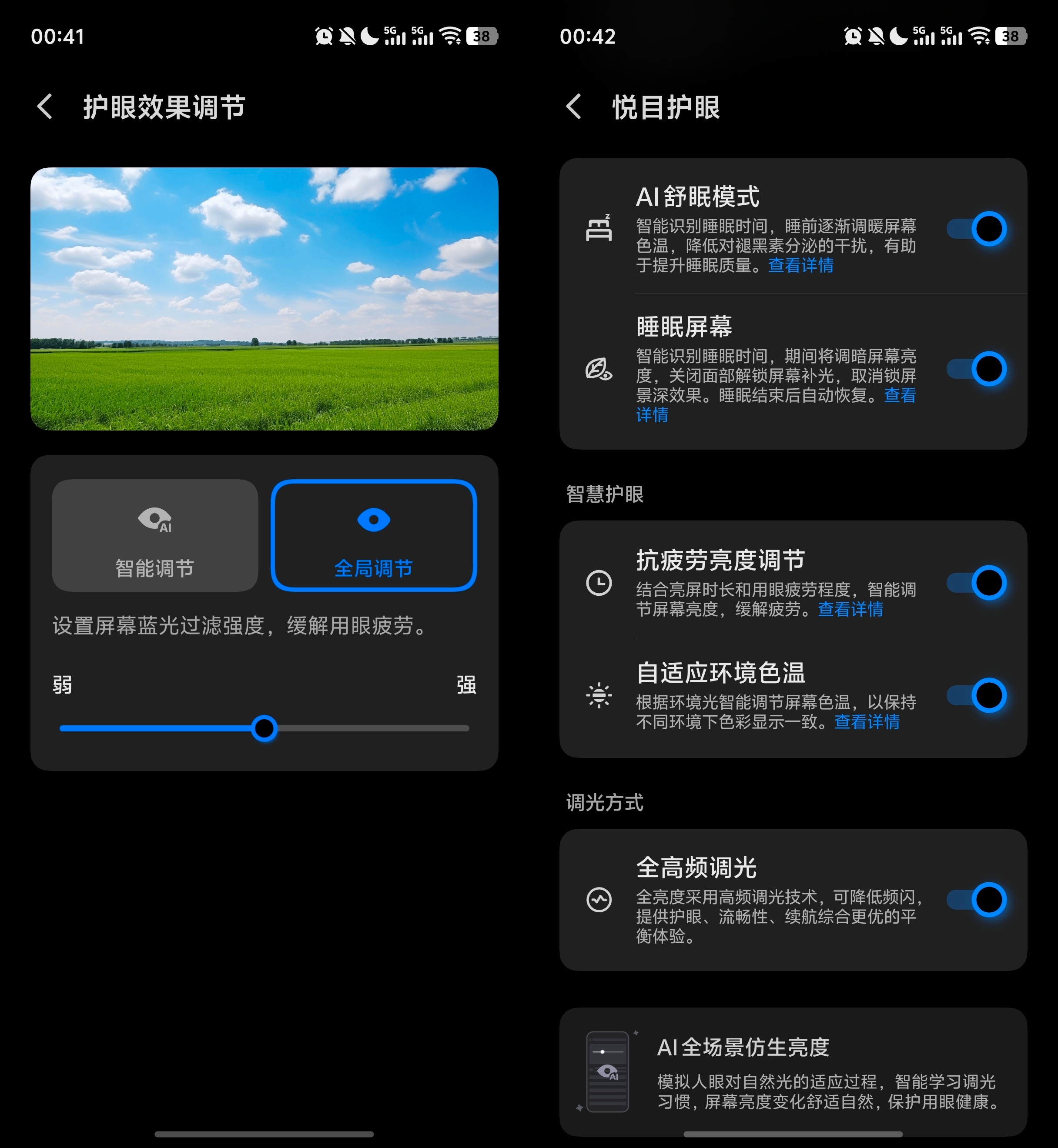 大小:187g 的重量还算好。我看到有人不满硕大的圆形镜头模组会顶到手指,但其实我会特意把食指托在那儿,改握持的姿势成让它「半挂半躺」在我的手里,这样就不再需要小拇指在底部托住它了,也是一种意外的解脱。影像:广角和长焦都够能打,人文街拍模式和风格模式还挺有可玩性。护眼:悦目护眼模式下有抗疲劳亮度调节、自适应环境色温、全高频调光这么几个选项,我不管三七二十一全打开了,肯定比不上 LCD 屏幕,但相比我的 iPhone 12 和之前的 Pixel 7 Pro,观感还是要温和一点的。我对自己的定位就是个稍微挑剔那么一点点的普通用户。